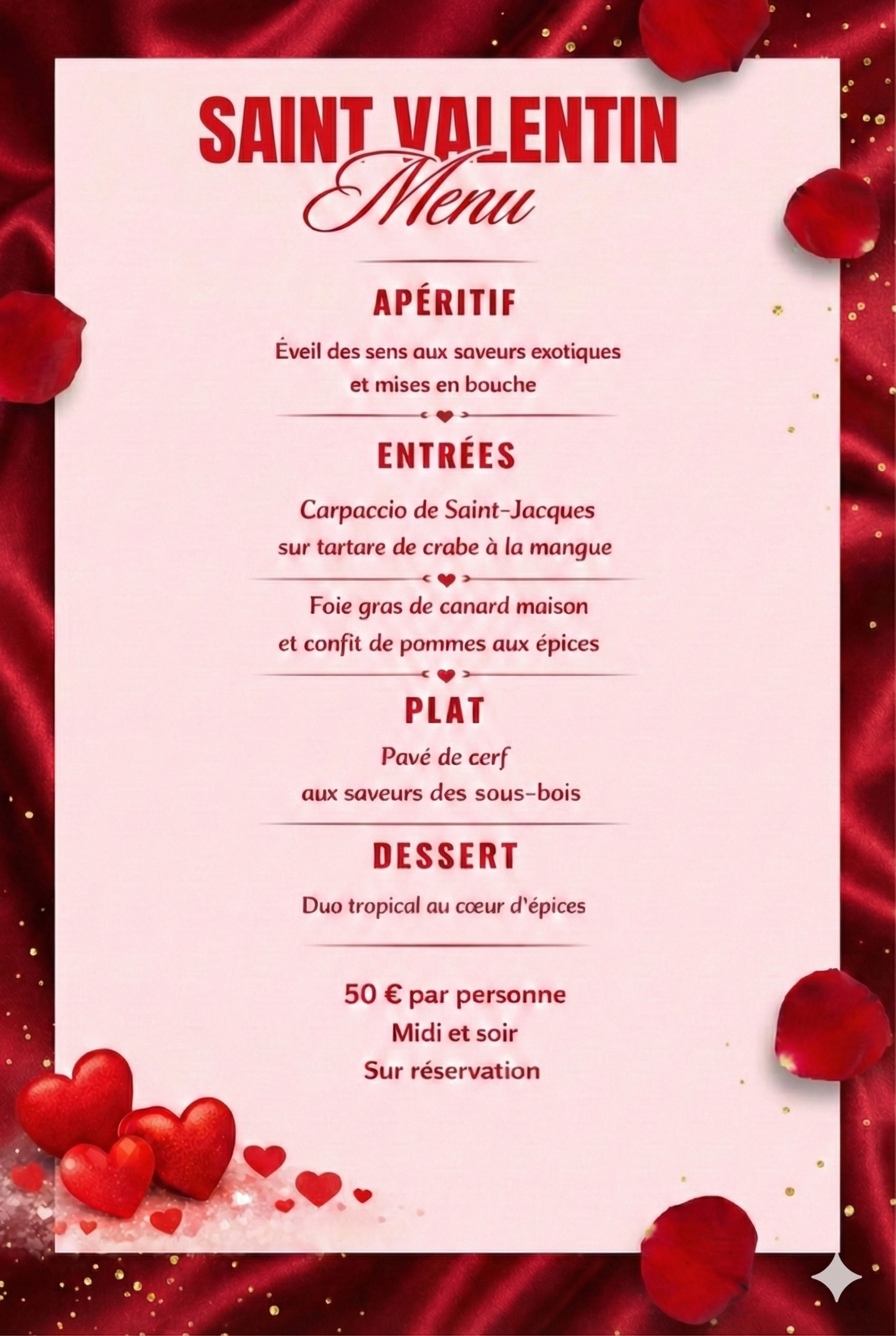 Le chef adapte le menu à votre budget et propose également des formules cocktail ou apéritif dinatoire.